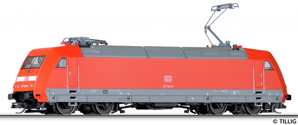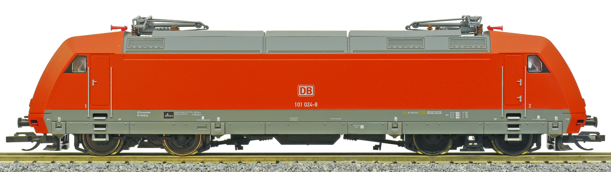 Kód   02320  [Lokomotivy] → [Elektrické] → [BR 101] → 02320: elektrická lokomotiva červená s šedou střechou a s polopantografy