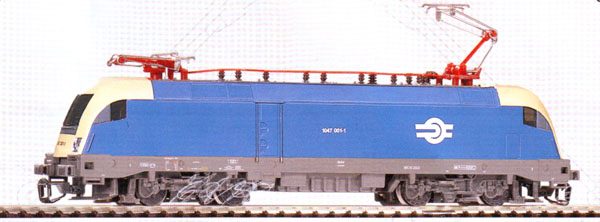 Kód   47439  [Lokomotivy] → [Elektrické] → [BR 182 Taurus] → 47439: elektrická lokomotiva modrá-bílá s reklamním potiskem „SPARDA-BANK“