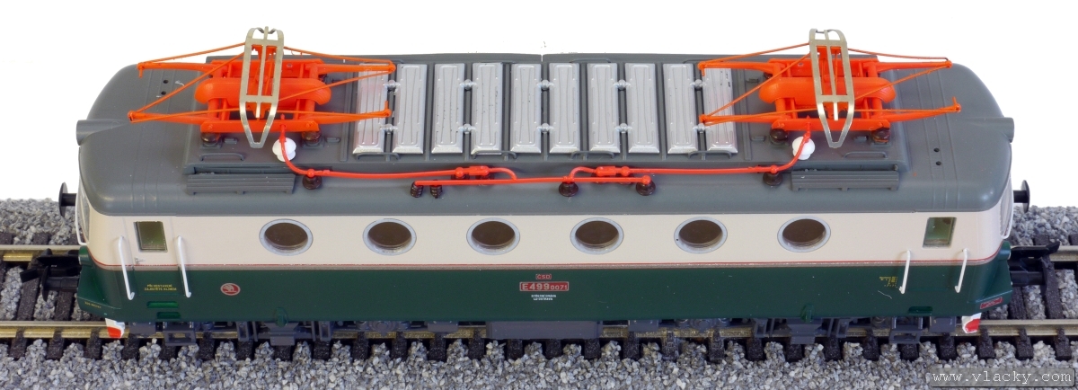 Kód   2313  [Lokomotivy] → [Elektrické] → [E499.0] → 2313: elektrická lokomotiva zelená-hráškově zelená s šedou střechou