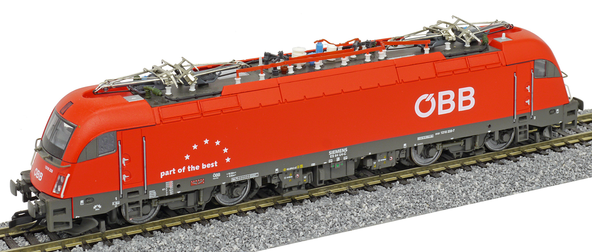 měřítko 1:120 - rozchod kolejí 12 mm osvětlení - 3 reflektory vpředu, 2 světla vzadu, přepínatelné podle směru jízdy kinematika krátkého spřáhla (KKK) podle normy NEM 358 digitální rozhraní podle NEM 658 s konektorem PluX12 možný provoz s pantografem 163 mm - celková délka modelu přes nárazníky 4 - celkový počet náprav nebo rozložení náprav 280 g - hmotnost brutto - model včetně prodejního obalu