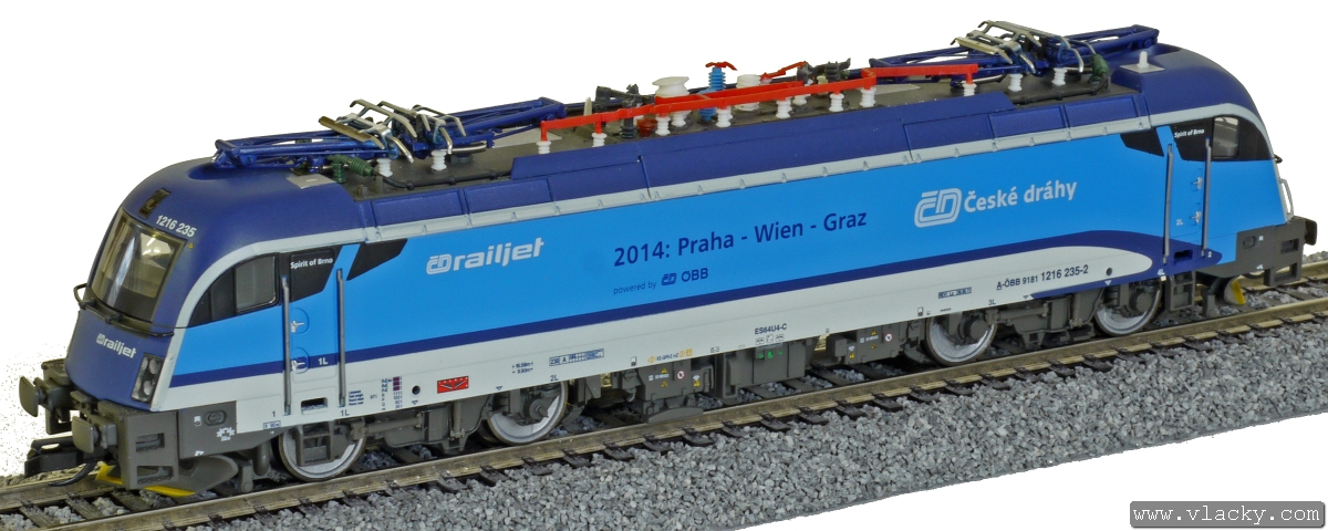 | elektrická lokomotiva modrá-bílá „ČD Railjet / Spirit of Brno“ |