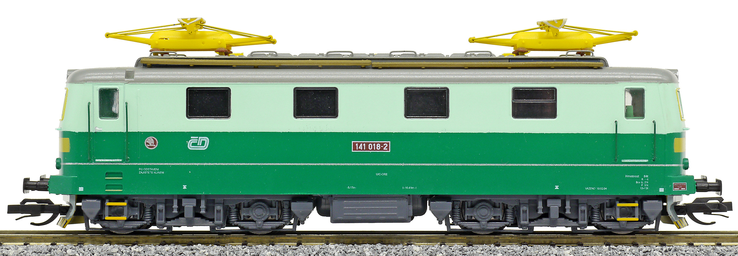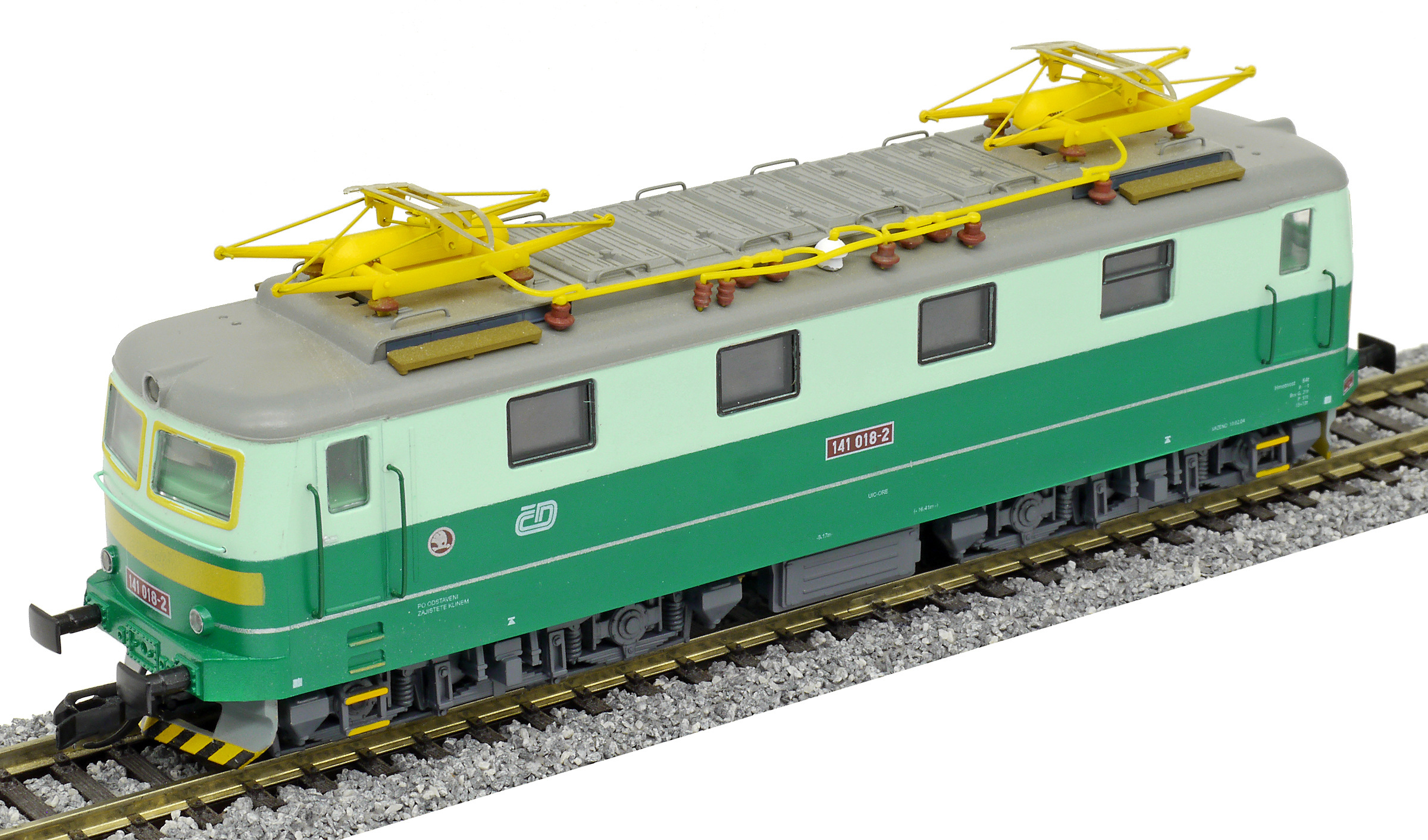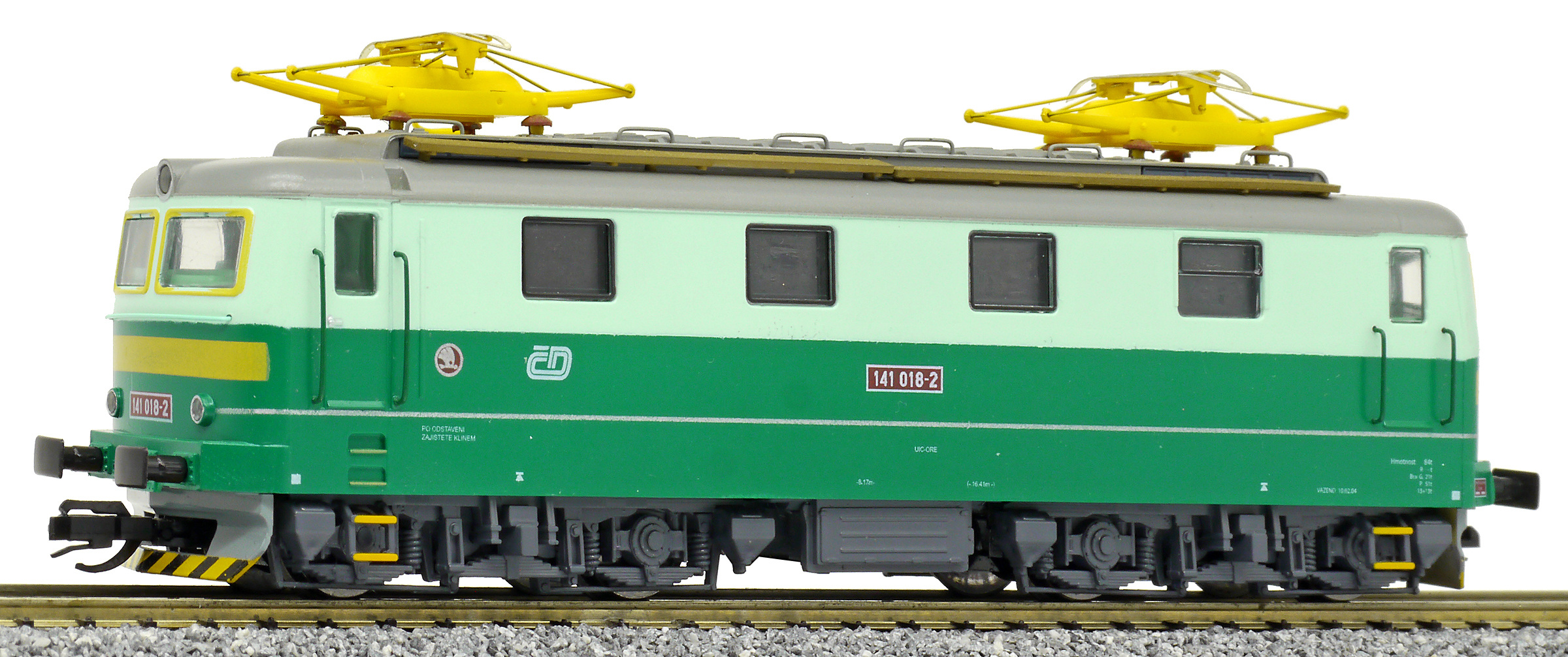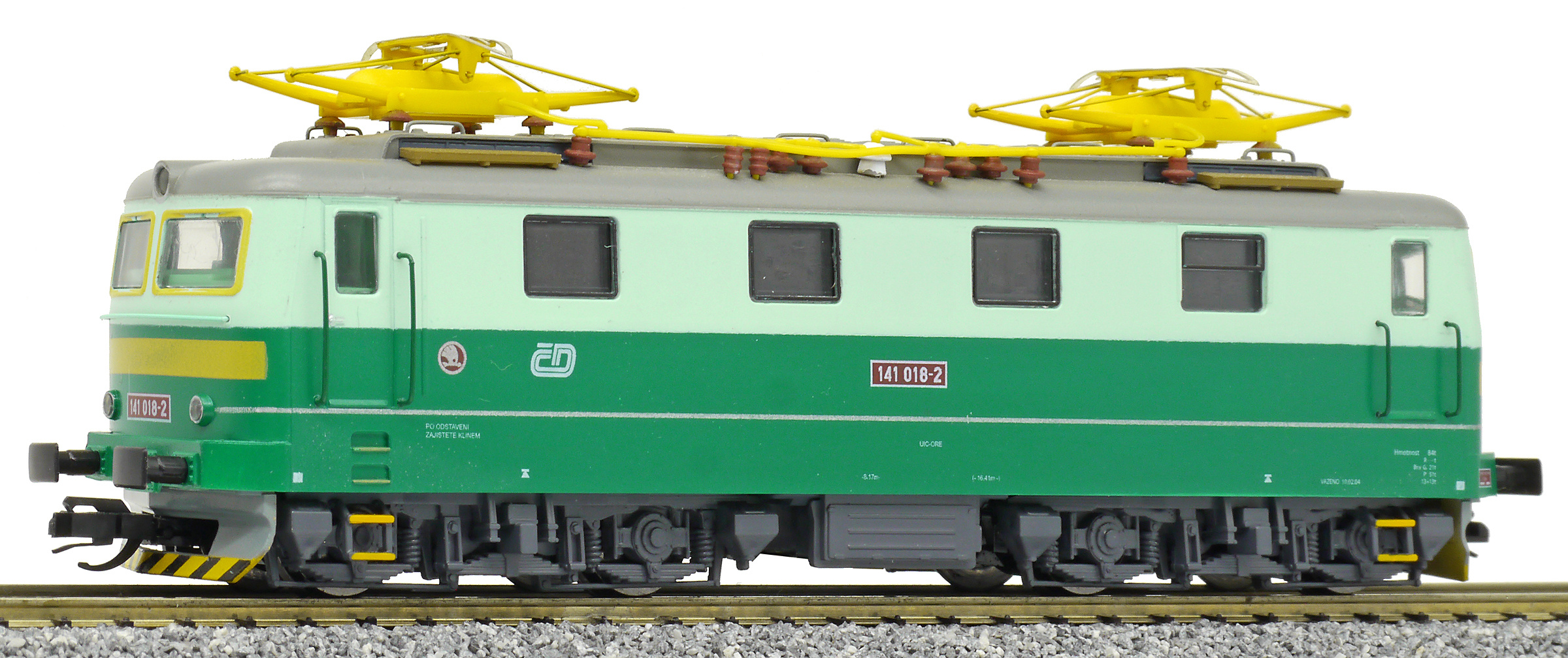 Kód   CD-141-006  [Lokomotivy] → [Elektrické] → [E499.1/E469.1] → CD-141-006: elektrická lokomotiva v odstínech zelené, šedá střecha, žlutý výstražný pruh