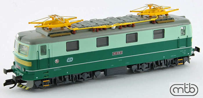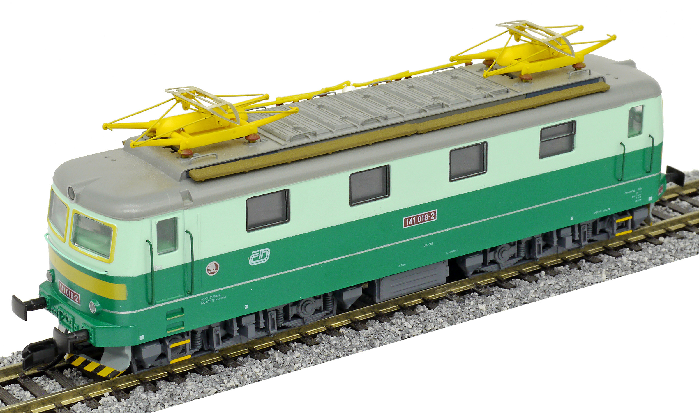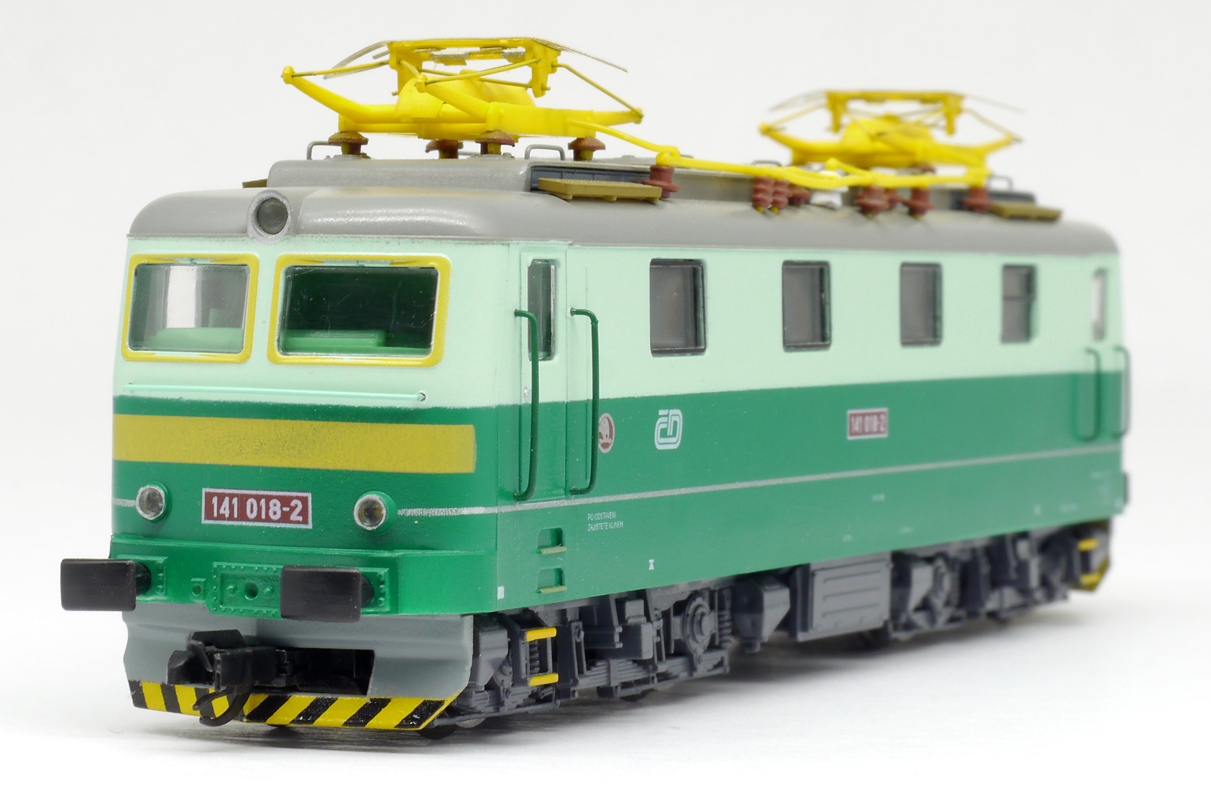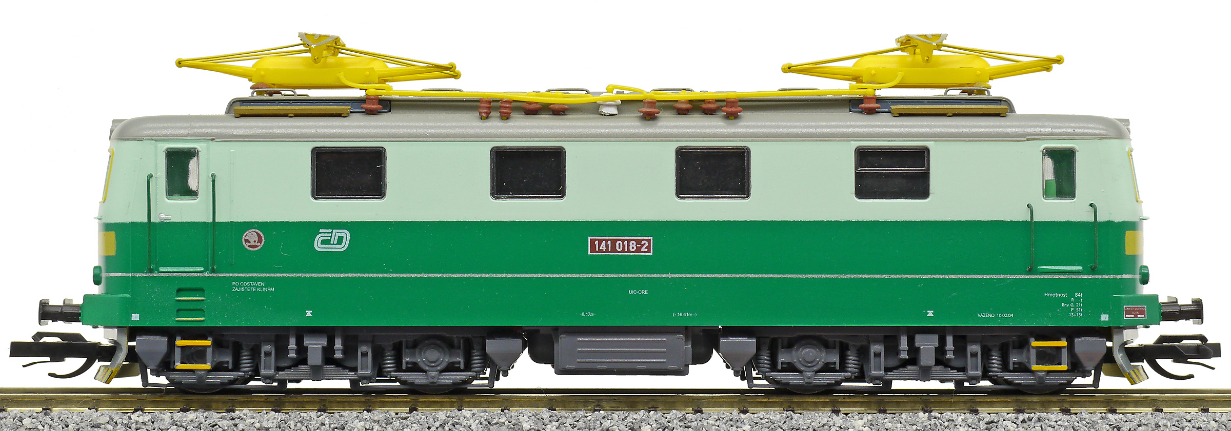 Kód   CD-141-006  [Lokomotivy] → [Elektrické] → [E499.1/E469.1] → CD-141-006: elektrická lokomotiva v odstínech zelené, šedá střecha, žlutý výstražný pruh