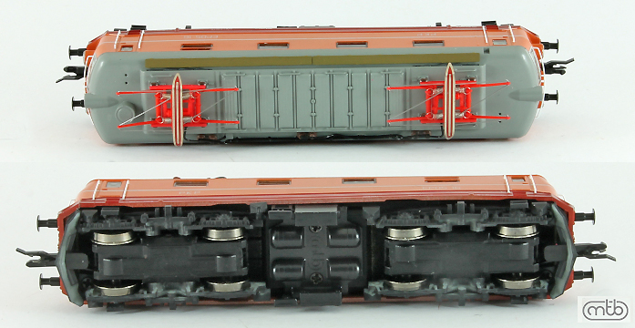 Popis   elektrická lokomotiva červená s šedou střechou