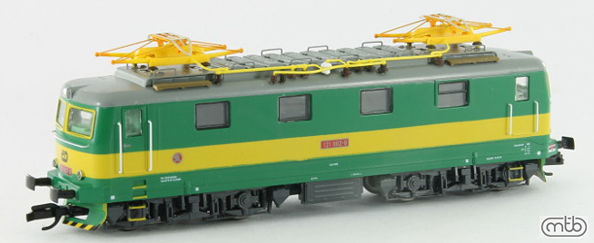 Kód   CD-141-006  [Lokomotivy] → [Elektrické] → [E499.1/E469.1] → CD-141-006: elektrická lokomotiva v odstínech zelené, šedá střecha, žlutý výstražný pruh