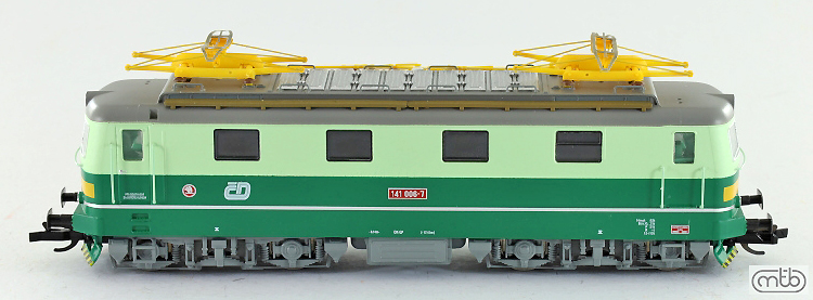 Kód   CD-141-018   [Lokomotivy] → [Elektrické] → [E499.1/E469.1] → CD-141-018 : elektrická lokomotiva v odstínech zelené, šedá střecha, žlutý výstražný pruh