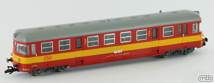 Kód   CSD-820-045  [Lokomotivy] → [Motorové vozy a jednotky] → [M240.0 (820)] → CSD-820-045: motorový vůz červený-slonová kost s šedou střechou, výstražný pruh na čelech