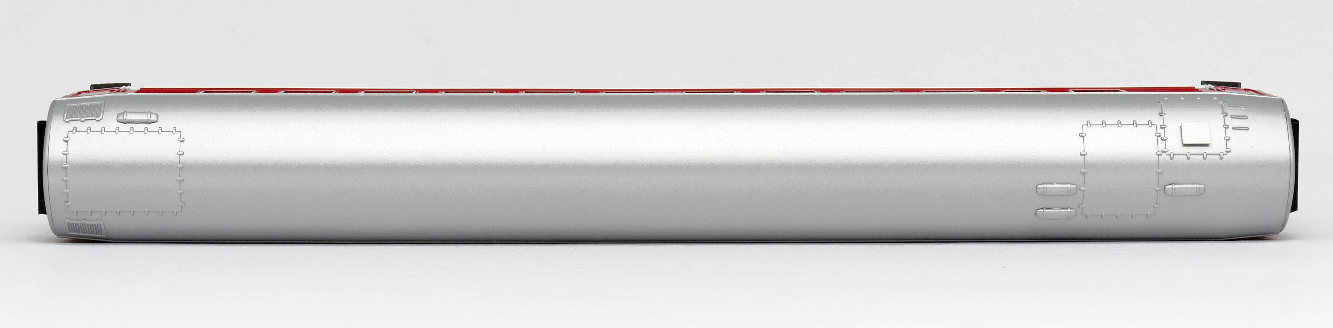 | lůžkový vůz červený-bílý s stříbřitou střechou |