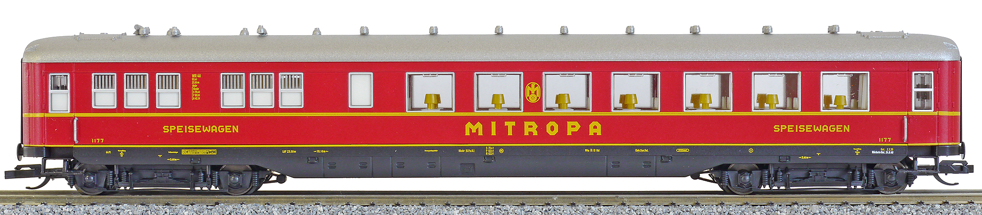 Popis   jídelní vůz červený se stříbrnou střechou „MITROPA“