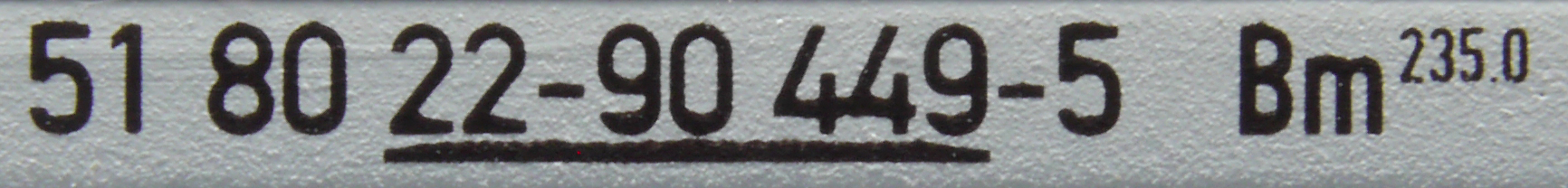 | • 51 80 22-90 449-5 | → | osobní vůz s pevným rozchodem bez klimatizace mezinárodní provoz RIC |
