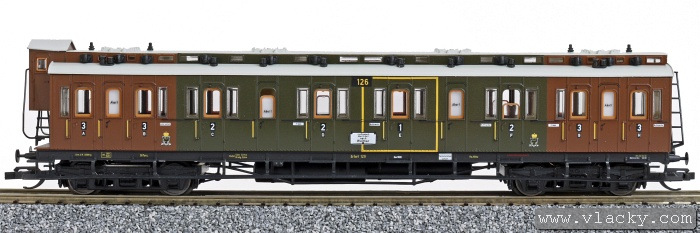 | oddílový osobní vůz zelený-hnědý se světle šedou střechou 1./2./3. tř. |