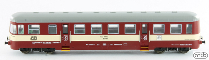 | osobní vůz červený-slonová kost s šedou střechou se zavazadlovým oddílem 2. tř. |