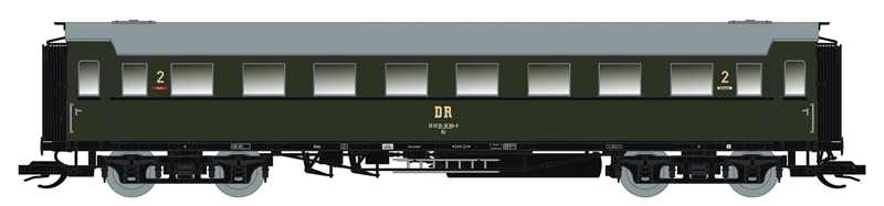 | oddílový osobní vůz zelený s šedou střechou 2. tř. |