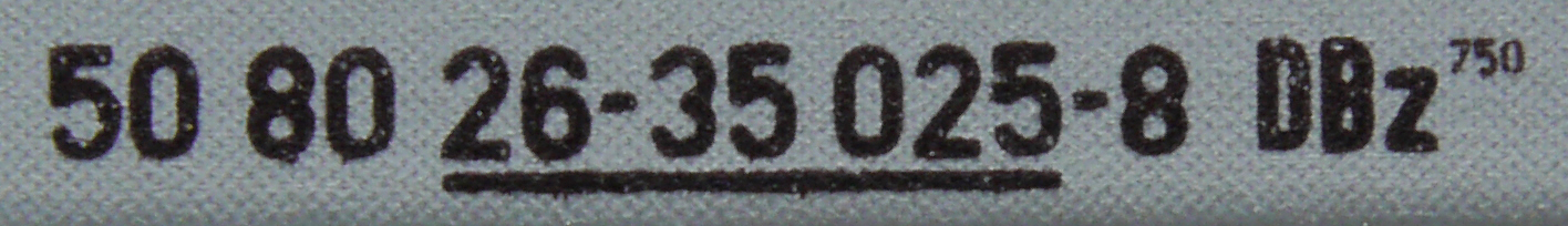 Číslo   50 80 26-35 025-8  Kontrolní číslice je v pořádku  Tovární číslo