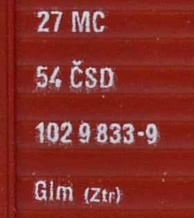 | • 27 54 102 9 833-9 | → | ČSD - Československé státní dráhy |