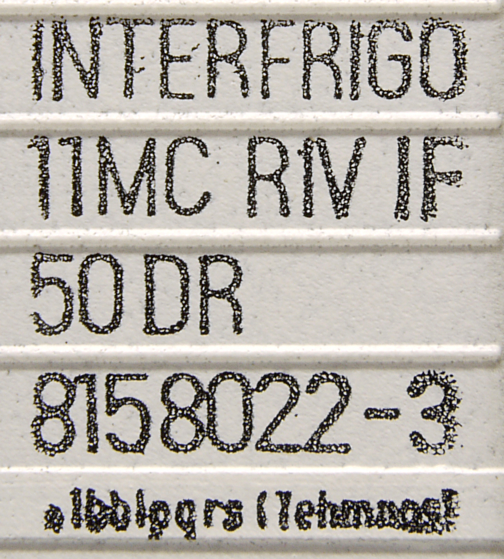 | • Ibblpqrs | - | vůz s regulovanou teplotou, chladící vůz s tepelnou izolací třídy IN, s výměnou vzduchu pomocí větračů, s podlahovým roštem a schránami na led (3,5 m3 nebo více) |