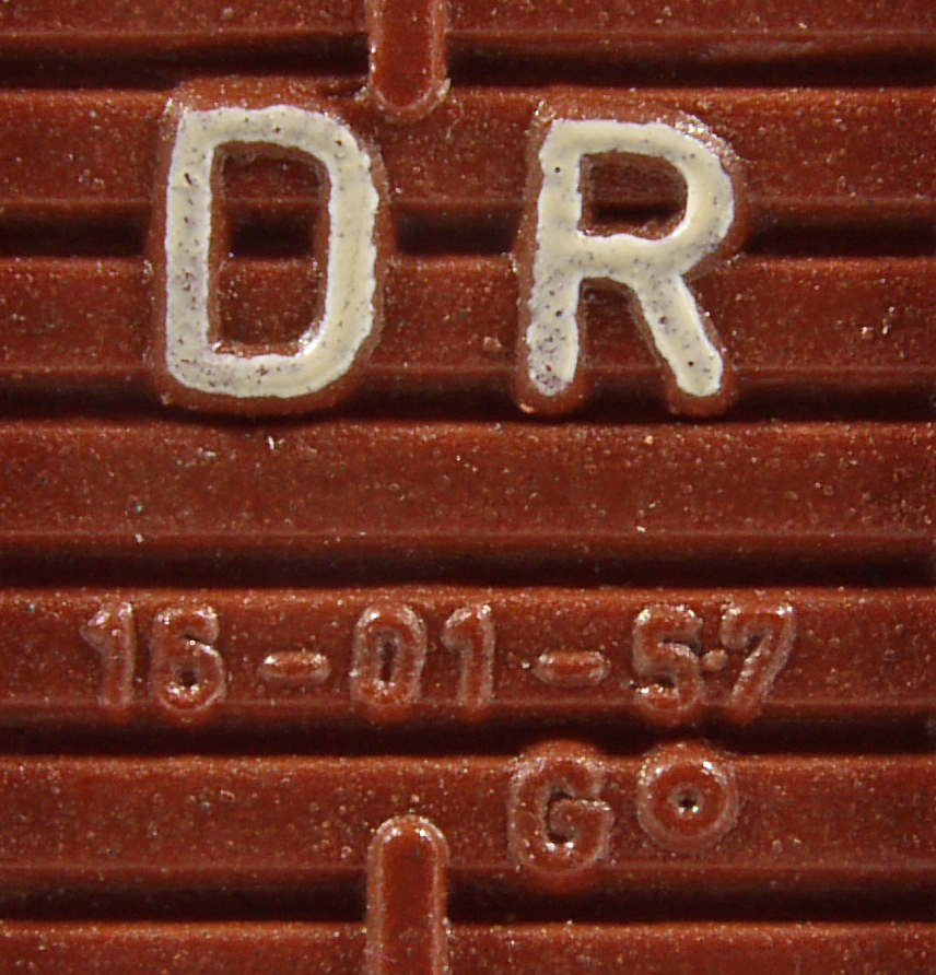 krytý nákladní vůz červenohnědý s šedou střechou a s brzdařskou budkou