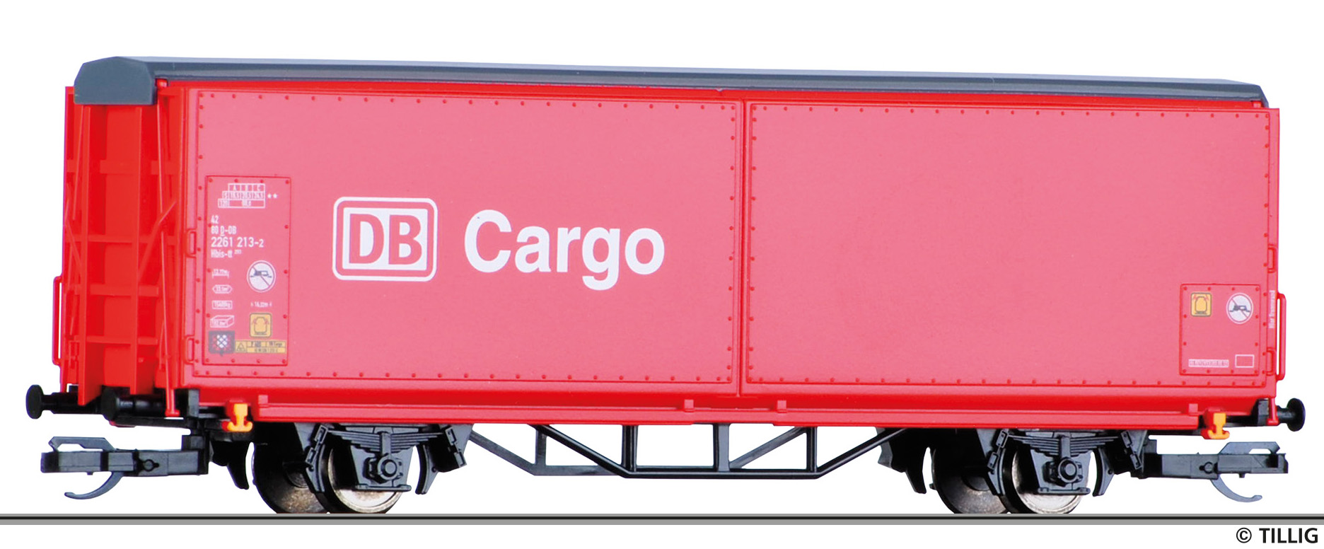 Kód   35001   ze SETu   [Nákladní vozy] → [Kryté] → [2-osé s posuvnými bočnicemi] → 35001: nákladní vůz s posuvnými bočnicemi červený ″DB Cargo″