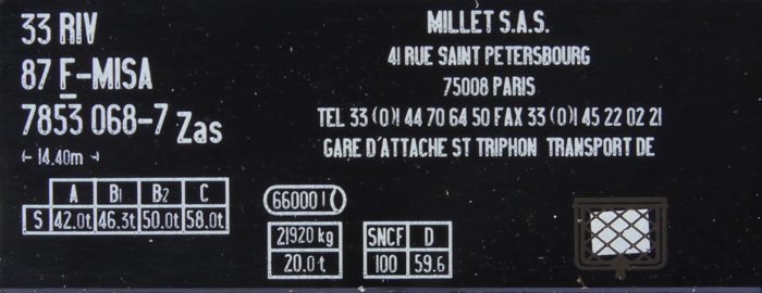 | • 33 87 7853 068-7 | → | nákladní, s podvozky, pevný rozchod, soukromý vůz, RIV, PPV |