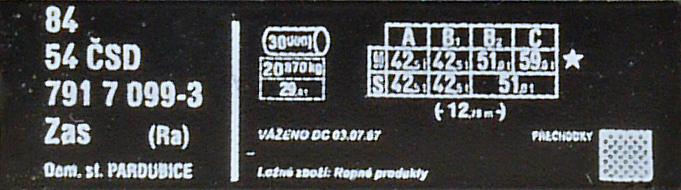 | • 84 54 791 7 099-3 | → | ČSD - Československé státní dráhy |