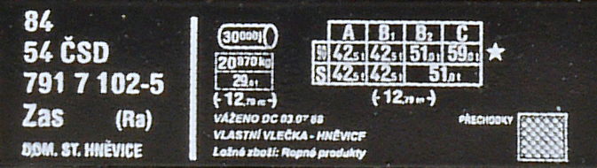 | • 84 54 791 7 102-5 | → | ČSD - Československé státní dráhy |
