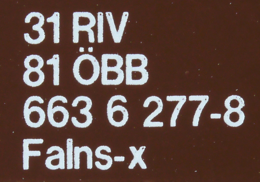| • 31 81 663 6 277-8 | → | nákladní, s podvozky, pevný rozchod, ve vlastnictví železniční správy, RIV, PPV |