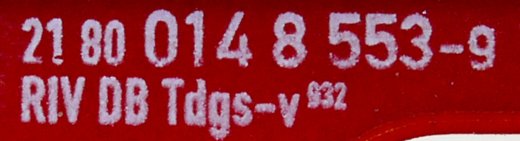 | • 21 80 014 8 553-9 | → | nákladní, nezávislé nápravy, pevný rozchod, ve vlastnictví železniční správy, RIV, PPV |