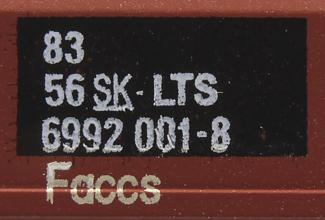 Kód   3505.3  [Nákladní vozy] → [Samovýsypné] → [4-osé Faccs (Sas)] → 3505.3: červenohnědý s opravnými fleky, patinovaný