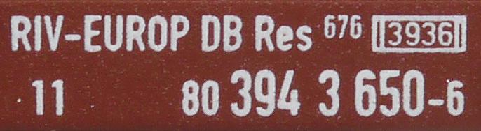 | • 11 80 394 3 650-6 | → | nákladní, s podvozky, pevný rozchod, ve vlastnictví železniční správy, RIV, EUROP/IF |