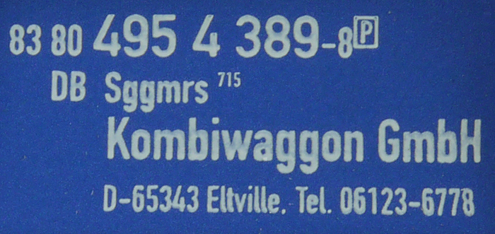 | • 83 80 495 4 389-8 | → | nákladní, s podvozky, soukromý vůz, pro mezinárodní dopravu dle zvláštních úmluv |