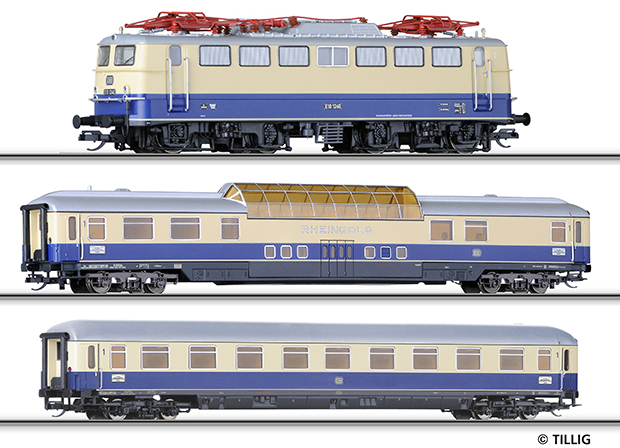 | set lokomotivy E 10 a dvou rychlíkových vozů „Rheingold 1“ |