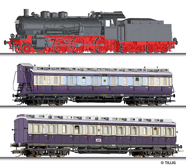 Kód   L 10012 AP  [Soupravy] → [S lokomotivou] → L 10012 AP: set parní lokomotivy BR 71, zavazadlového vozu a dvou osobních vozů 2./3. tř.