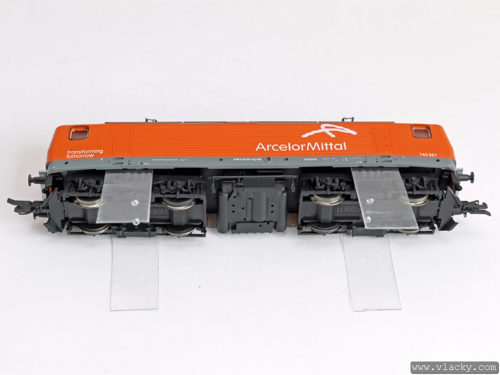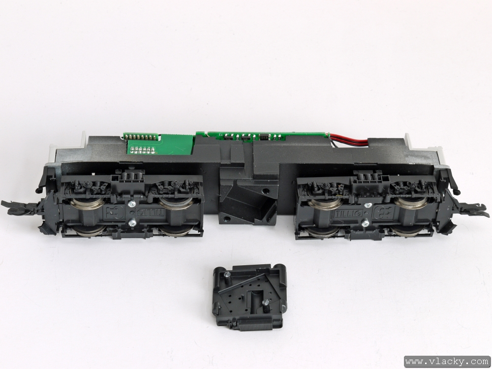 Z pojedu lokomotivy stáhneme plastový výlisek, jeho správnou stranovou orientaci zajišťují dva plastové čepy.