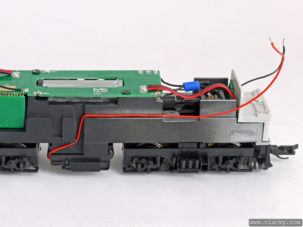 Přívody vysílače LISSY byly připájeny na pájecí plošky označené X9 a X11 vedle přívodů od podvozku lokomotivy. V tomto okamžiku je lokomotiva připravena k provozu.