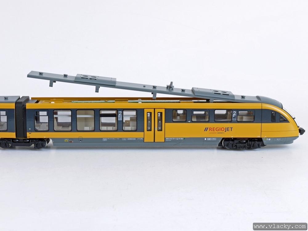 Motorová jednotka BR642 „Desiro” připravená k osazení LISSY vysílače. Pracovat budeme pouze s částí, kde je umístěn motor, což lze poznat zespodu podle podvozku s ozubenými převody a podle skříně, kde je pouze 2. vozová třída.