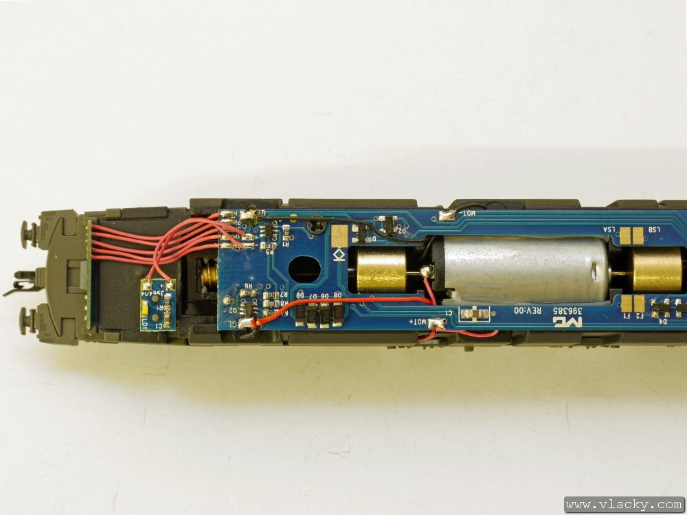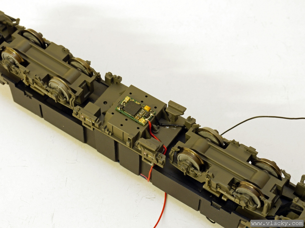 Přívody vysílače LISSY byly připájeny na pájecí plošky GL a GR vedle přívodů od podvozku lokomotivy. V tomto okamžiku je lokomotiva připravena k provozu.