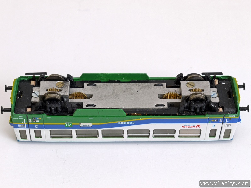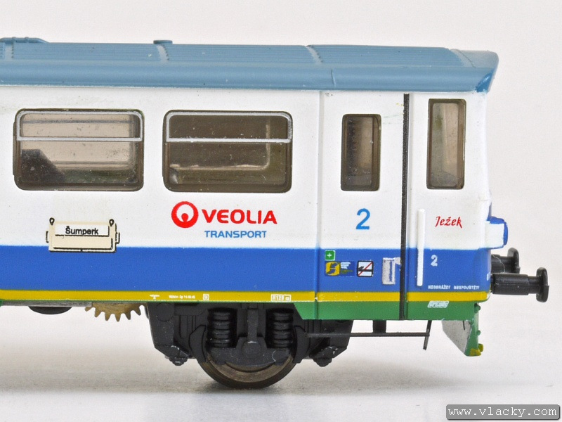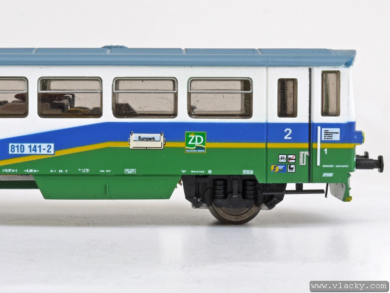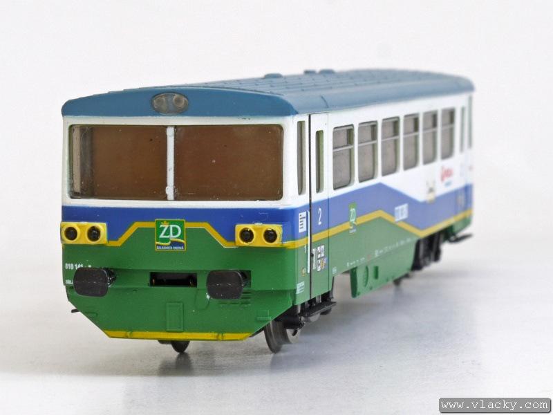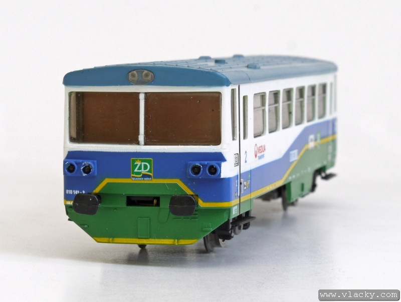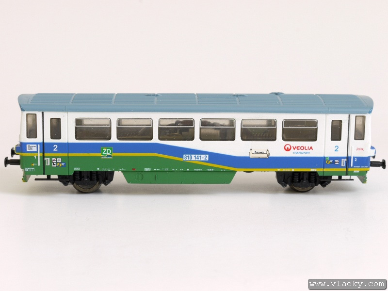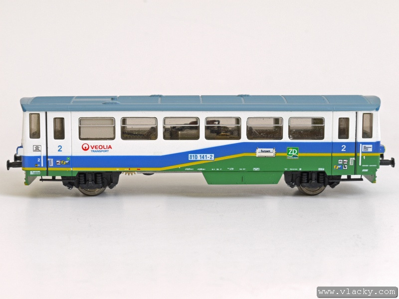 Motorový vůz 810 141-2 "Ježek" jezdí po tratích Železnice Desná jak do Koutů nad Desnou, tak zajíždí také do Sobotína. Na vlacích s vyšší frekvencí v případě ranní a odpolední dopravní špičky potom s některým z přívěsných vozů, které jsou jinak odstaveny v železniční stanici Kouty nad Desnou. V úseku Šumperk - Petrov nad Desnou lze tento motorový vůz zahlédnout spřažený s motorovou jednotkou "Desná" 814 501-3/914 501-3. Takto jezdí přímé vlaky Šumperk - Kouty nad Desnou/Sobotín. V Petrově nad Desnou je souprava rozdělena a každý motorový vůz pokračuje samostatně do své cílové stanice. Vyjímečně se objeví na trati i delší soupravy, jako tomu bylo v případě oslav 10. výročí Železnice Desná, které proběhlo 12.9.2009 v Koutech nad Desnou. Modelové zpracování je provedeno přesně podle skutečného motorového vozu s novým logem "Veolia Transport Česká republika a.s.", které se na vozech objevilo na konci roku 2008. Vlastní model je postaven z osvědčených stavebnic LPH s nutnými úpravami pro osazení továrního pojezdu od firmy PMT. Tak jako v případě potisku přívěsných vozů, ani zde nechybí detaily jako směrová cedule "Šumperk", nápisy dopravce Veolia Transport Česká republika a.s., logo Železnice Desná na bocích i čelech vozů a různé piktogramy na dveřích. Motorový vůz je vybaven pozičním osvětlením na čelech, které se mění v závislosti na směru jízdy. Vůz nemá kinematiku krátkého spřáhla (KKK), protože se předpokládá provoz v ucelené soupravě. Mezi motorovým vozem a přívěsným vozem může být použita pevná spojka. Vhodným přívěsným vozem je 010.549-4 bez směrové cedule, který je dostupný pod katalogovým číslem M0994. Motorový vůz 810 141-2 "Ježek" je ke shlédnutí v šumperské prodejně TTmodely. Podle dalších informací probíhá u výrobce kompletace modelu distribuce bude od 20.12.2010. Přednostně budou vykrývány předchozí předobjednávky modelu. Bude vyrobena limitovaná série 25 kusů a s další výrobou se nepočítá, protože bude následovat výroba další dvou zmíněných motorových vozů v barvách Železnice Desná. V následující fotogalerii je kromě detailu modelu zachycena skutečná předloha motorového vozu v rozmezí od 11.10.2008, kdy už byl k viděný s novým logem dopravce až do zimy 25.1.2010. Další informační zdroje: